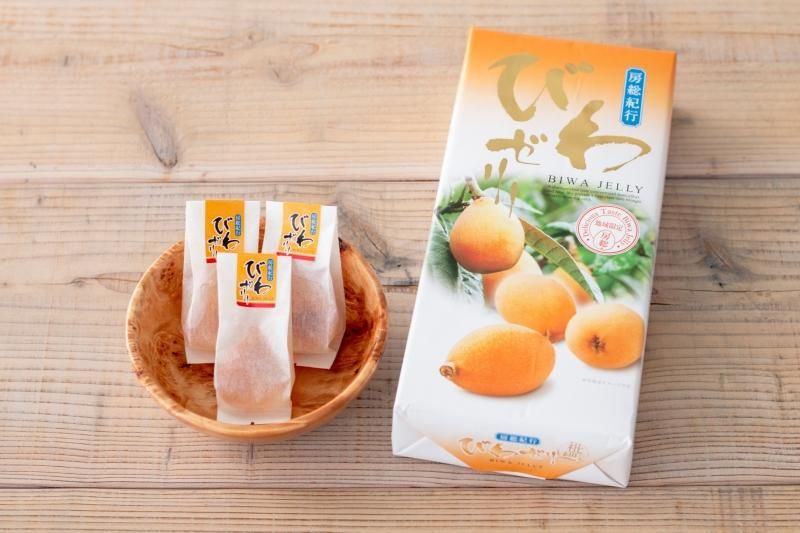 ジューシーなびわの果肉をゼリーで閉じ込めた一口サイズのびわゼリーです。つるんとした食感とやさしいびわの甘みを楽しめます。